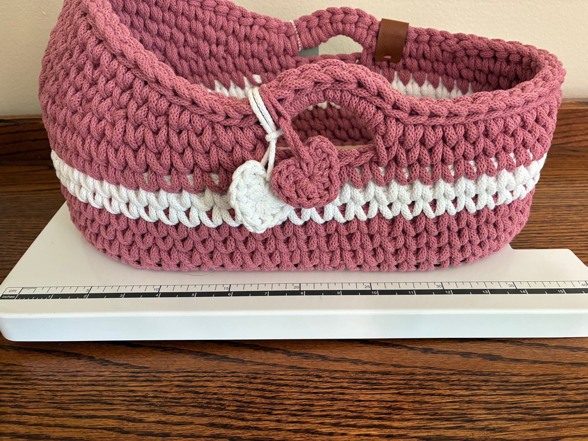 An adorable baby doll bed for your little one. Basket is 7" x 14" with a wood base to add durability to playtime. Handles on both sides are perfect for little hands to carry.