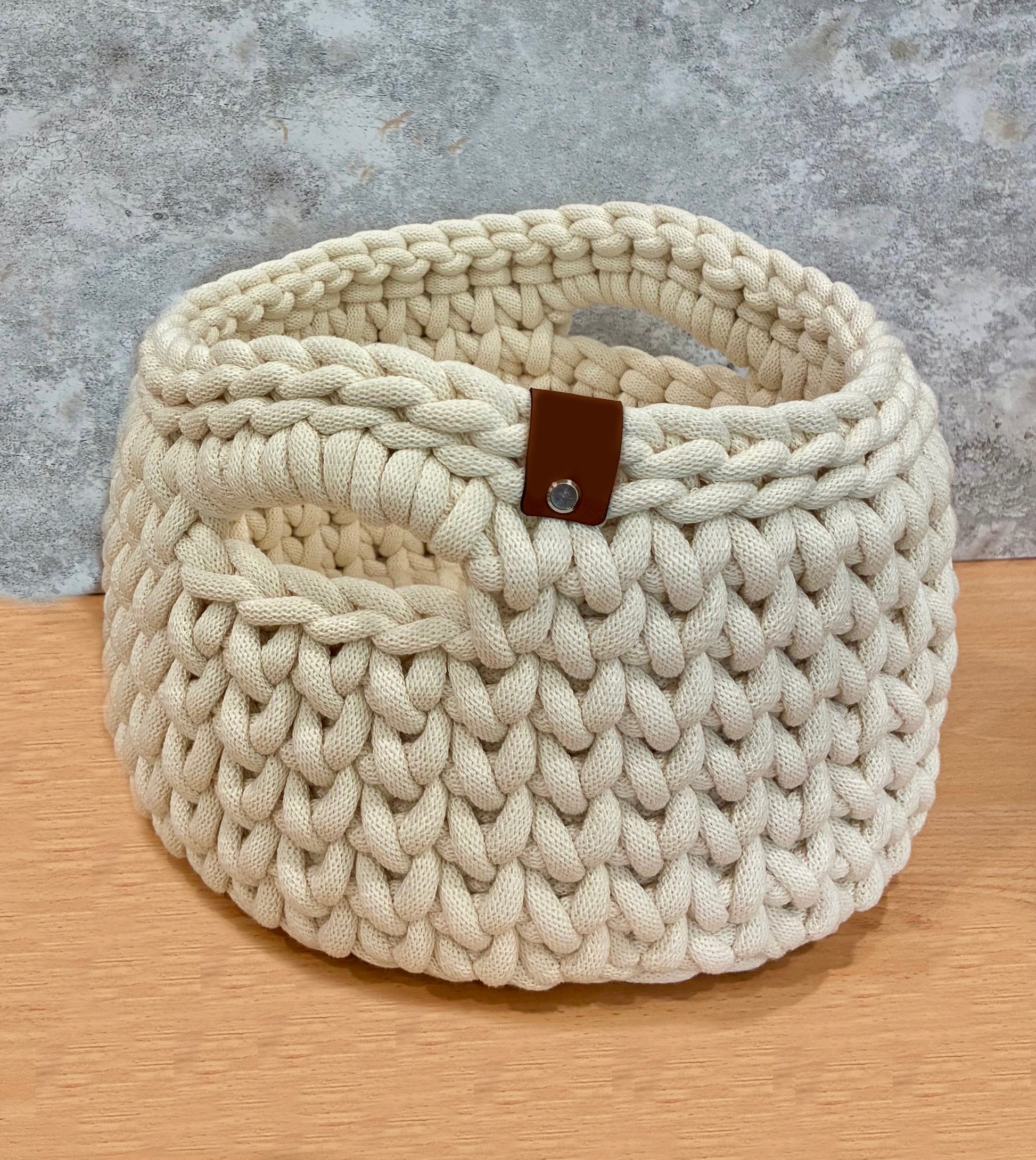 Karla basket is 10.5” in diameter x 8” high and made of 100% cotton braided 9mm cord.